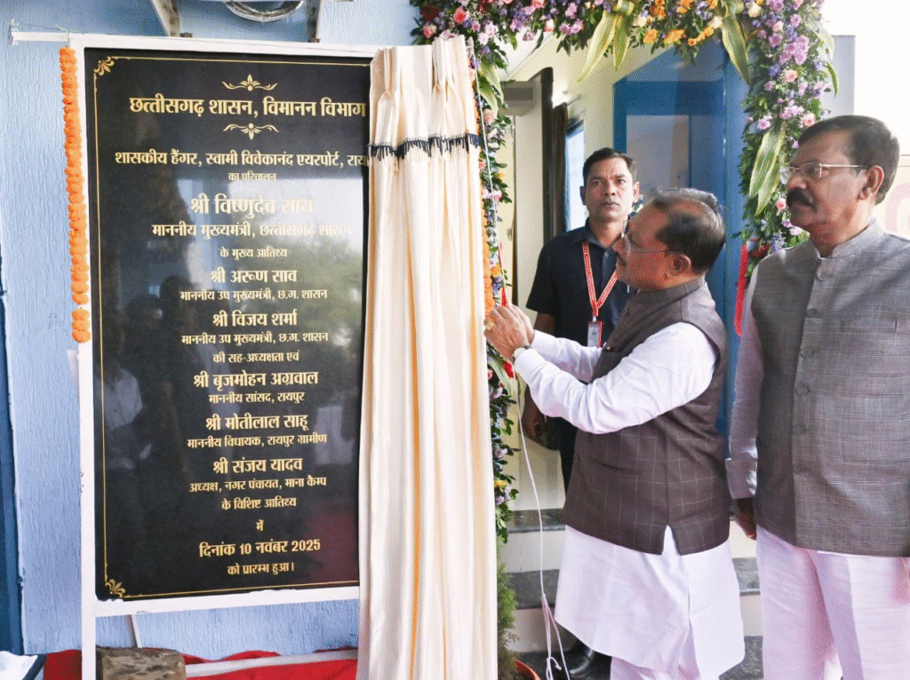 मुख्यमंत्री विष्णु देव साय ने आज स्वामी विवेकानंद विमानतल परिसर, माना कैम्प के समीप बने स्टेट हैंगर के नियमित विमान परिचालन सेवा का शुभारंभ किया। शुभारंभ के पश्चात मुख्यमंत्री साय अपने गुजरात प्रवास हेतु इसी नए स्टेट हैंगर से रवाना हुए।