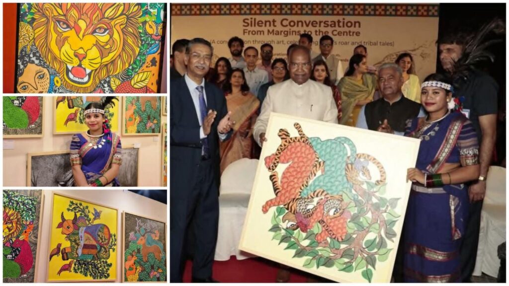मुंगेली, 14 अक्टूबर 2025। अचानकमार टाइगर रिज़र्व की प्रतिभाशाली युवा कलाकार रागिनी धुरवे ने अपनी गोंड चित्रकला के माध्यम से राष्ट्रीय स्तर पर छत्तीसगढ़ का नाम रोशन किया है। भारत सरकार की नेशनल टाइगर कंजर्वेशन अथॉरिटी (NTCA), नई दिल्ली द्वारा आयोजित “साइलेंट कंजर्वेशन फ्रॉम मार्जिन टू सेंटर” राष्ट्रीय कला प्रदर्शनी में रागिनी की कलाकृति का चयन किया गया।
