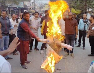 अरुण साव पर टिप्पणी के विरोध में भाजपा का पुतला दहन