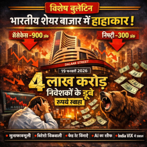 आज भारतीय शेयर बाजार (Indian Stock Market) में एक ‘ब्लैक थर्सडे’ (Black Thursday) जैसी स्थिति देखने को मिली। शुरुआती कारोबार में जो बाजार तेजी के साथ खुला था, वह दिन चढ़ने के साथ ही ताश के पत्तों की तरह बिखर गया। दलाल स्ट्रीट पर अचानक आई इस बिकवाली की आंधी में निवेशकों के करीब ₹4 लाख करोड़ एक ही झटके में स्वाहा हो गए।