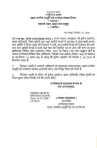 यह आदेश छत्तीसगढ़ के राज्यपाल के नाम से तथा शासन के उप सचिव भगवत जायसवाल द्वारा डिजिटल हस्ताक्षरित रूप में जारी किया गया है।