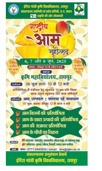 इंदिरा गांधी कृषि विश्वविद्यालय में 6 जून से तीन दिवसीय राष्ट्रीय आम महोत्सव का होगा आयोजन