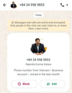 अधिकारी के नाम पर बनाए गए इस फर्जी नंबर +91 84349 589853 से मैसेज भेजे जा रहे हैं। फर्जी प्रोफाइल में कलेक्टर की तस्वीर और नाम का उपयोग कर लोगों को विश्वास में लेने की कोशिश की जा रही है।