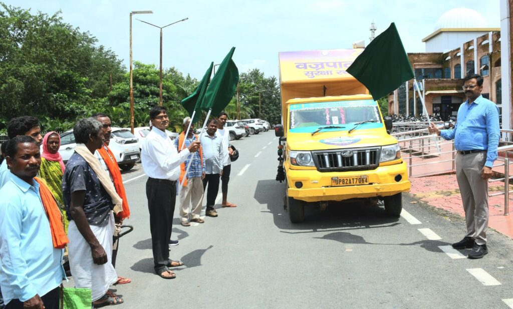 जिले में हर साल वज्रपात (आकाशीय बिजली) के कारण होने वाली जनहानि को रोकने और लोगों में सुरक्षा को लेकर जागरूकता बढ़ाने के उद्देश्य से बुधवार को कलेक्टर श्री राजेन्द्र कटारा ने संयुक्त जिला कार्यालय परिसर से वज्रपात सुरक्षा जागरूकता रथ को हरी झंडी दिखाकर रवाना किया।