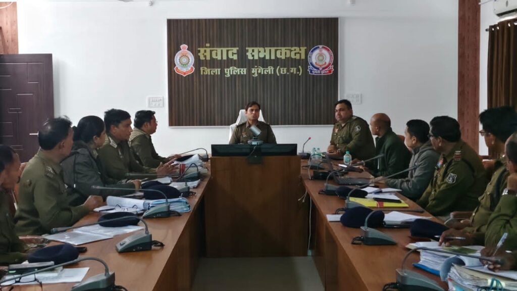 मुंगेली। पुलिस अधीक्षक कार्यालय स्थित संवाद कक्ष में 16 जनवरी 2026 को जिले की अपराध समीक्षा बैठक आयोजित की गई। बैठक में जिले के समस्त राजपत्रित पुलिस अधिकारी, थाना एवं चौकी प्रभारी तथा पुलिस कार्यालय की विभिन्न शाखाओं के प्रभारी उपस्थित रहे।