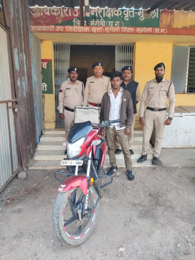 मुंगेली, 6 दिसंबर 2025/ कलेक्टर के निर्देश और जिला आबकारी अधिकारी रवि शंकर साय के मार्गदर्शन में आबकारी विभाग द्वारा अवैध शराब बिक्री और परिवहन के खिलाफ लगातार अभियान चलाया जा रहा है। इसी क्रम में शनिवार को बड़ी कार्रवाई करते हुए एक युवक को अवैध शराब के साथ गिरफ्तार किया गया।