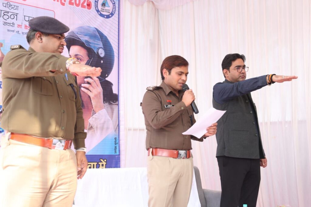 उन्होंने मंच से उपस्थित छात्र-छात्राओं, युवाओं और वाहन चालकों को सामूहिक रूप से यातायात नियमों के पालन की शपथ दिलाई।
