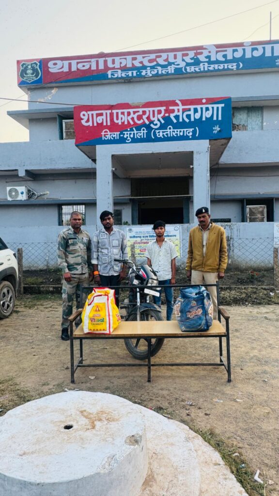 मुंगेली, 29 नवंबर 2025// पुलिस अधीक्षक भोजराम पटेल के निर्देशन में चलाए जा रहे ऑपरेशन बाज अभियान के तहत फास्टरपुर-सेतगंगा पुलिस ने बड़ी कार्रवाई करते हुए अवैध रूप से देशी शराब की बिक्री करने वाले दो आरोपियों को गिरफ्तार किया। आरोपियों के कब्जे से 140 पाव (25.200 बल्क लीटर) देशी प्लेन शराब, दो मोबाइल और घटना में प्रयुक्त मोटरसाइकिल जप्त की गई।