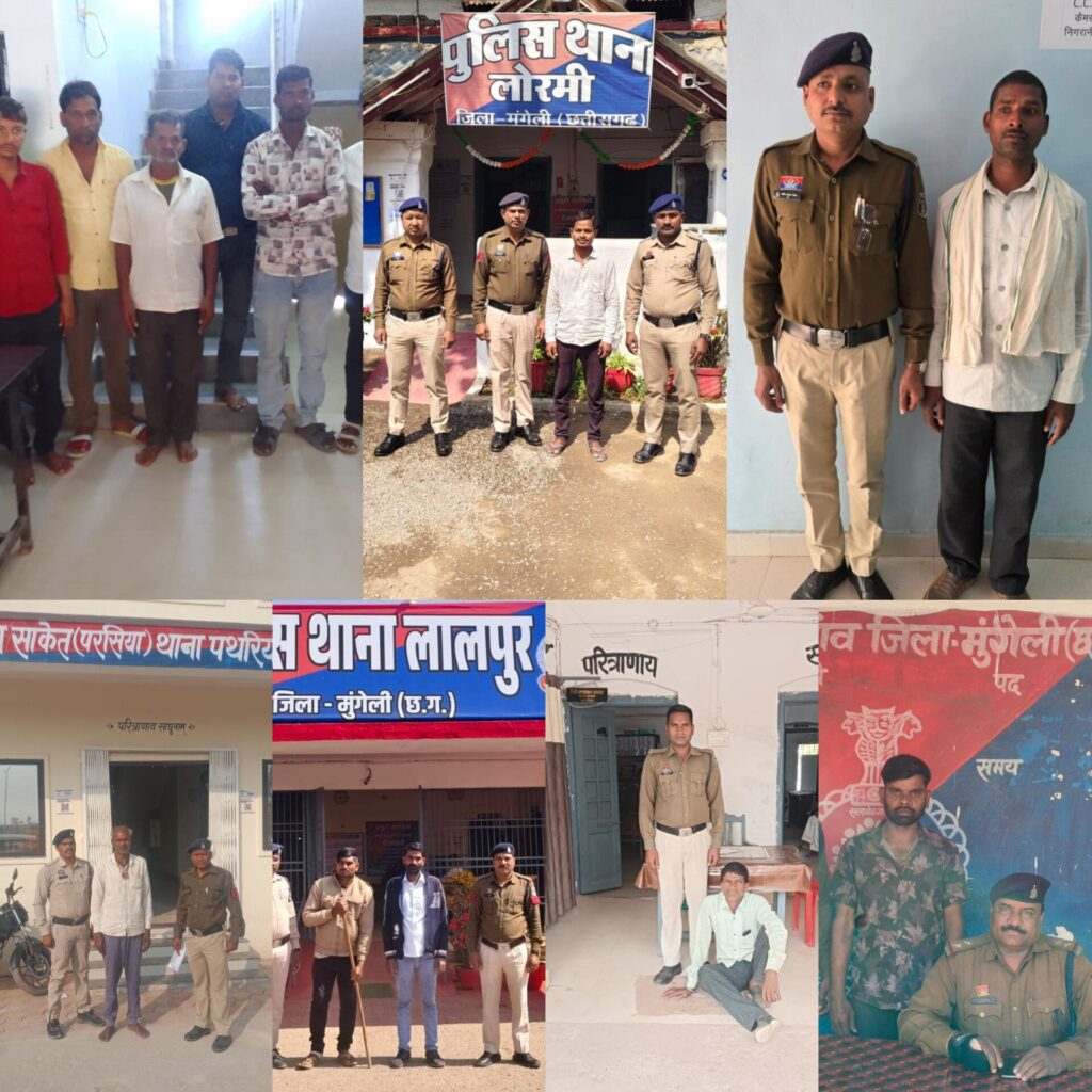 वरिष्ट पुलिस अधीक्षक भोजराम पटेल के निर्देशन में मुंगेली पुलिस द्वारा ‘‘ऑपरेशन बाज’’ के तहत 41 स्थायी वारंटियों को गिरफ्तार कर न्यायालय में पेश किया गया।