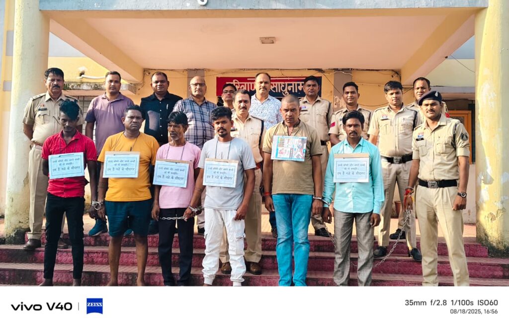 मुंगेली जिले में पुलिस अधीक्षक भोजराम पटेल (भा.पु.से.) के निर्देशन पर चलाए जा रहे विशेष अभियान “ऑपरेशन बाज” के तहत नशा तस्करी और सेवन करने वालों के विरुद्ध कड़ी कार्रवाई की गई। इस कार्रवाई में 08 नशा तस्करों को गिरफ्तार कर जेल भेजा गया। पुलिस ने आरोपियों का जुलूस भी शहर में निकाला और जनता को नशे के दुष्प्रभावों से सावधान रहने का संदेश दिया।
