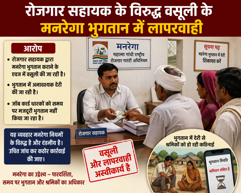 प्राप्त जानकारी के अनुसार, ग्राम पंचायत मुड़गांव में प्रधानमंत्री आवास योजना के एक हितग्राही को मनरेगा अंतर्गत स्वीकृत 90 मानव दिवस की मजदूरी का भुगतान समय पर नहीं किया गया। जांच में सामने आया कि रोजगार सहायक धनेश्वर प्रसाद यादव द्वारा कार्य पूर्ण होने के बावजूद मानव दिवस की प्रविष्टि समय पर ऑनलाइन नहीं की गई, जिससे हितग्राही को देय मजदूरी राशि प्राप्त नहीं हो सकी।