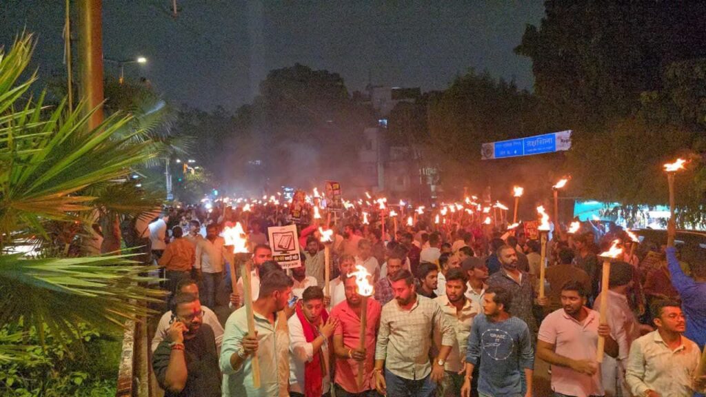 छत्तीसगढ़ प्रदेश युवा कांग्रेस ने आज राजधानी रायपुर में प्रदेश निर्वाचन आयोग कार्यालय तक ऐतिहासिक मशाल रैली निकालकर “वोट चोरी” के खिलाफ जोरदार प्रदर्शन किया। “वोट चोर- गद्दी छोड़” के नारों से वातावरण गूंज उठा।