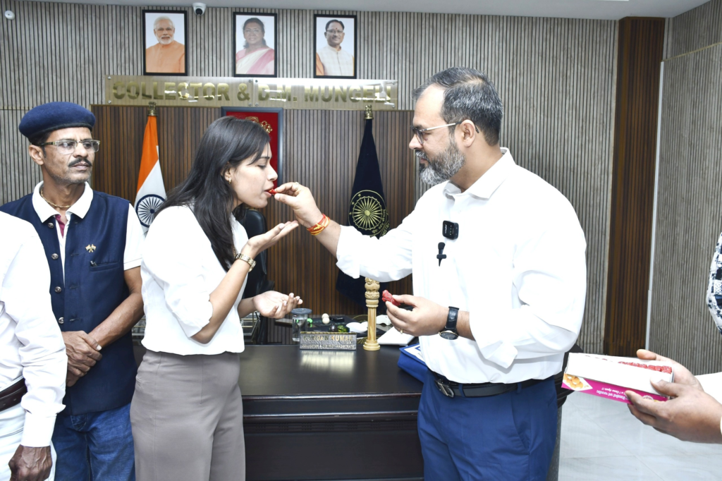 इस अवसर पर कुन्दन कुमार ने जिला कलेक्टोरेट में सुप्रिया से मुलाकात कर उपहार स्वरूप टैब प्रदान किया तथा बधाई और शुभकामनाएं दीं। उन्होंने सुप्रिया और उनके परिजनों को पुष्पाहार भेंटकर मुंह मीठा कराया और हालचाल जाना।