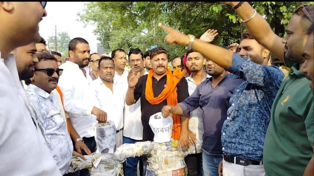 मुंगेली। प्रधानमंत्री नरेन्द्र मोदी की दिवंगत माताजी को इंडी गठबंधन के मंच से अपमानजनक टिप्पणी किए जाने के विरोध में भारतीय जनता युवा मोर्चा ने मुंगेली में जोरदार प्रदर्शन किया। युवामोर्चा ने परशुराम चौक पर राहुल गांधी और तेजस्वी यादव का पुतला दहन किया।